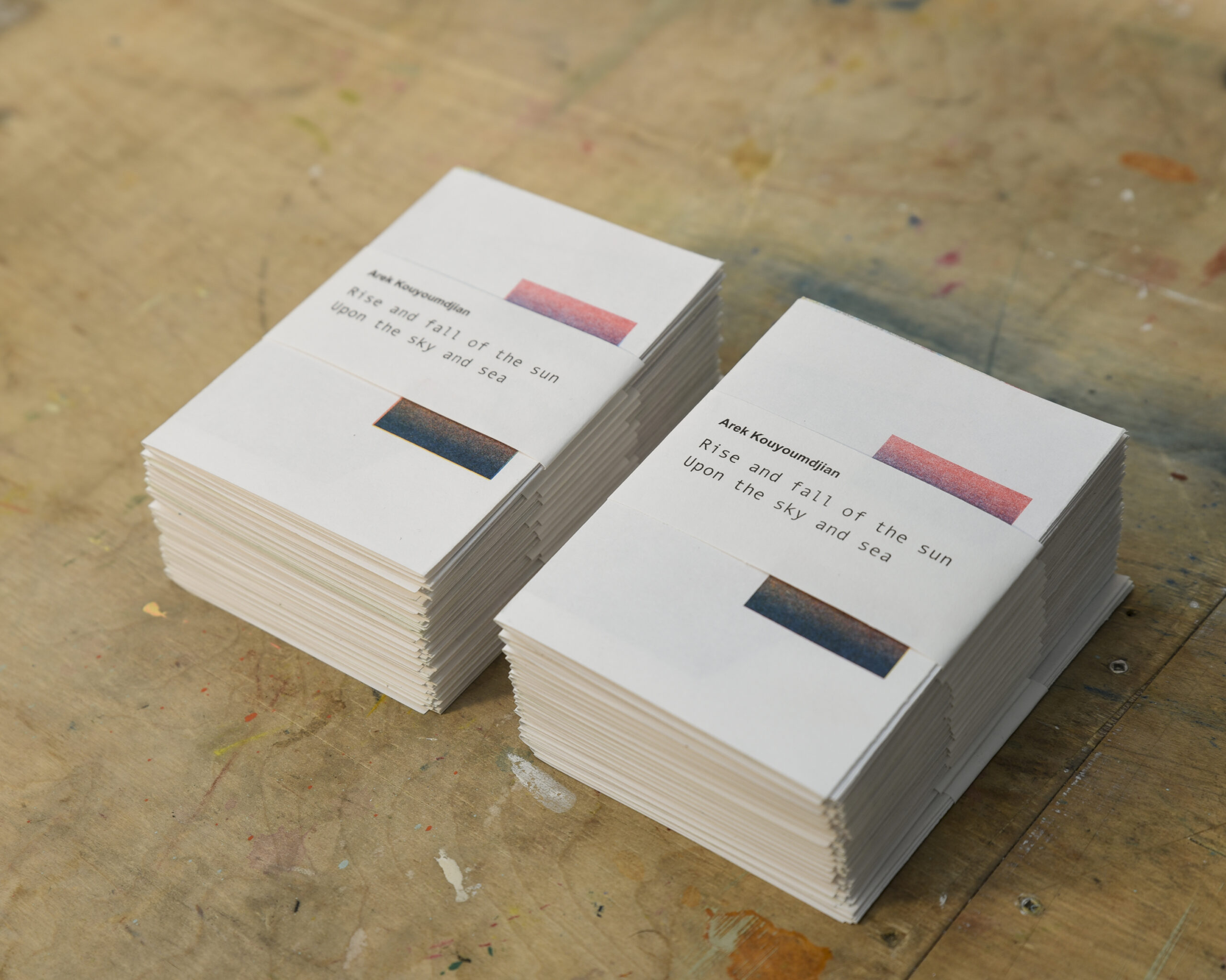 "Rise And Fall Of The Sun, Upon The Sky And Sea" is an A3 four-color print poster that becomes an eight-page edition once folded.