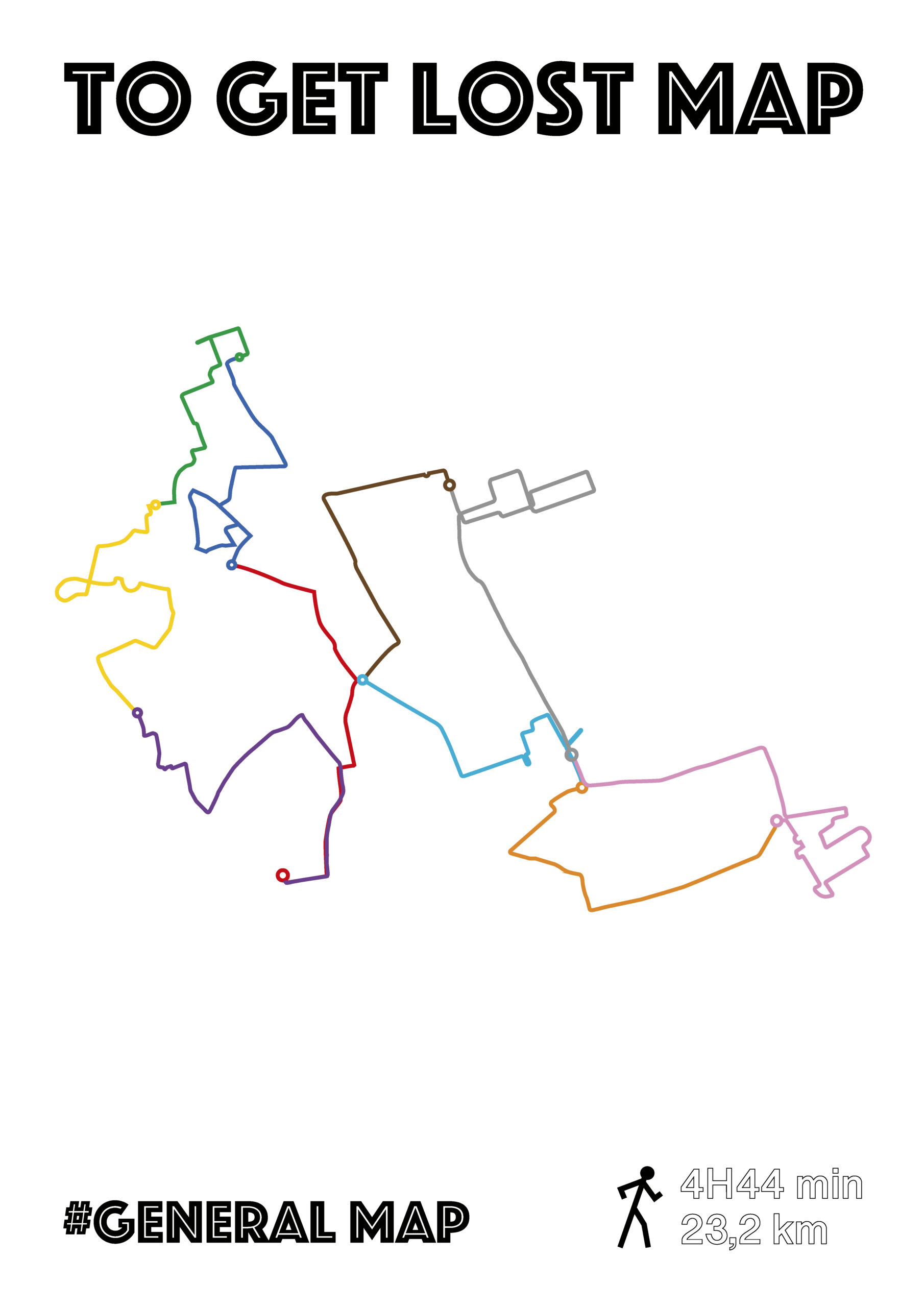 Les « To Get Lost Maps » sont basées sur mes déambulations. Ni frontière, ni nom de rue, juste un tracé, une distance en km et un durée de parcours pour seul indice spatial. Reliées entre elles, le point de départ de l’une est le point d’arrivée d’une autre.